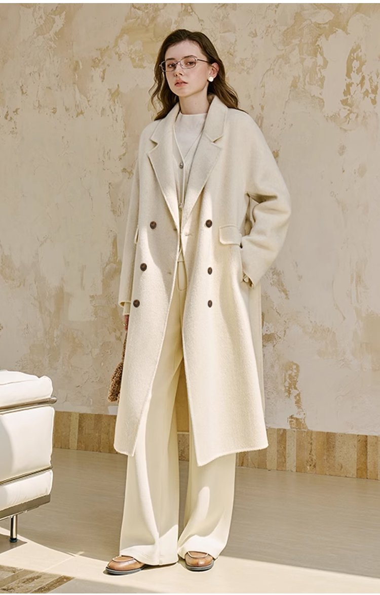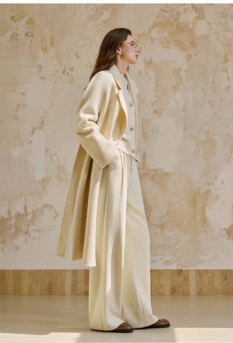여성 미디롱 가을 겨울 헵번 모직 코트